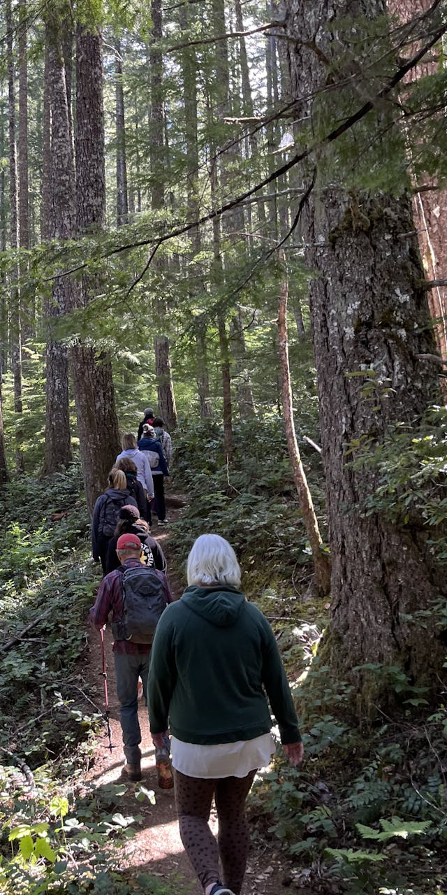 Forest bathing and silent hikes are integral to every retreat. Each hike is thoughtfully scouted in advance, offering both easy and challenging options to suit all levels. We begin in silence, immersing ourselves in the natural surroundings and personal reflection, and then enjoy a social hike on the way back, sharing the experience together.